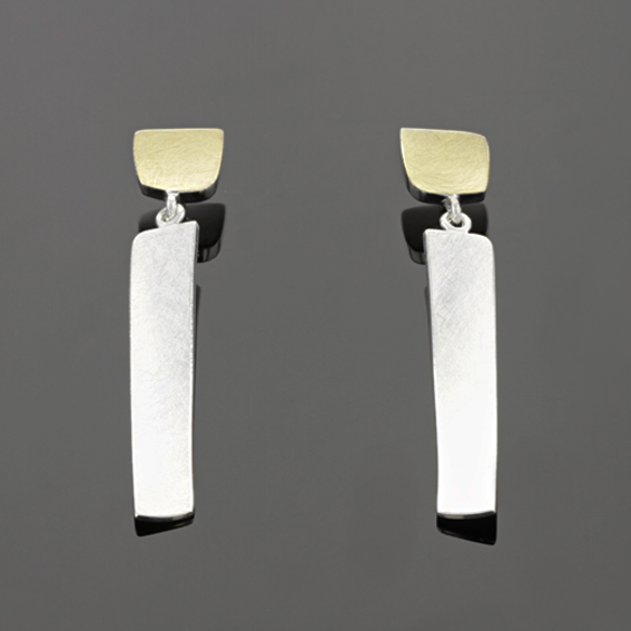 Ohrhänger 2tlg. mit Ösenbewegung, Oberteile 900/-GG belötet 8 x 8 mm und 1,5 mm stark, Behang Silber 36 x 6 mm, 0,8 mm stark.Gesamtlänge 50 mm, Gewicht pro Stück = 3,1 gr.