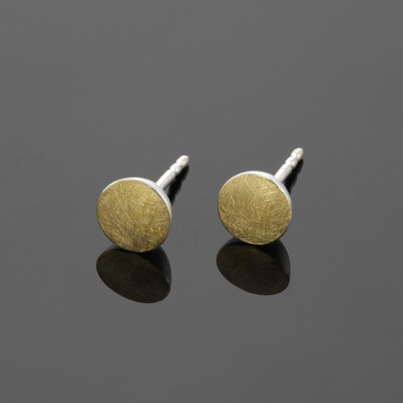 Ohrstecker kleiner Kreis, Durchmesser 6 mm, nach hinten verjüngend, Höhe 4,5 mm. Obenauf 900/- GG belötet.