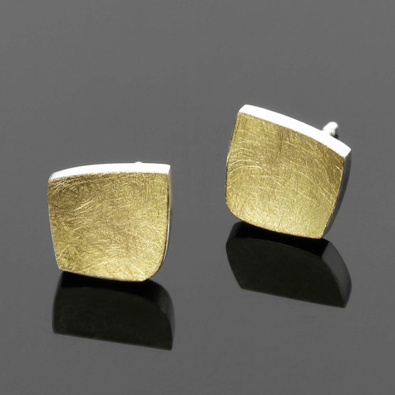 Ohrstecker verschobenes Quadrat, 8 x 8,5 mm, kpl. mit 900/-Gg belötet.Stärke 1,5 mm, Stifte mittig, Rückseite poliert