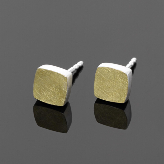 Ohstecker kleines Quadrat mit gerundeten Kanten 6 x 6 mm, kpl. belötet,Stärke 3,8 mm, Stifte mittig