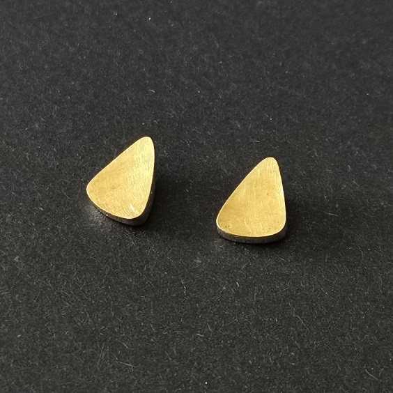 Ohrstecker Dreieck 11 x 8 mm, leicht aufgetieft, kpl. mit 900/- GG belöteteismatt, Stifte leicht versetzt Richtung Spitze. Stärke 1,5 mm.