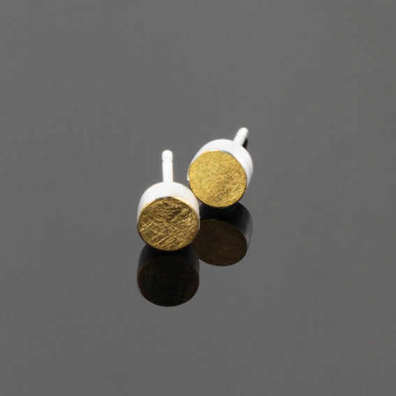 Ohrstecker mini Kreis 4,5 mm, zylindrische Form, Stärke 3 mm, oben 900/-GG belötet.Stifte hinten mittig.