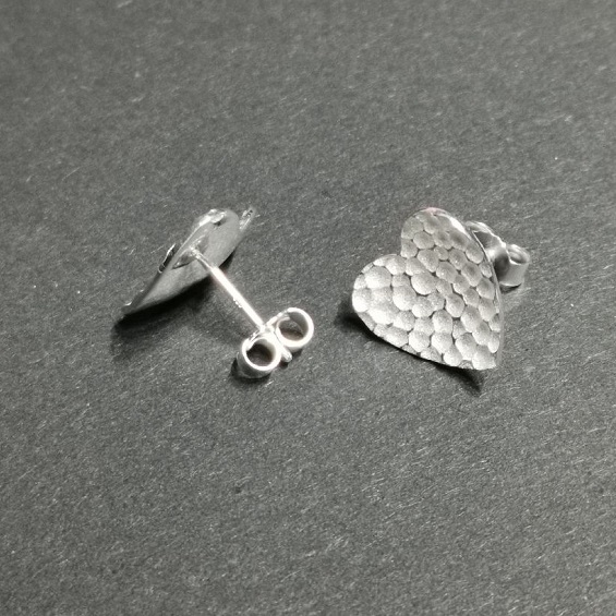 Ohrstecker Herz 14 x 14 mm, leicht aufgetieft, feine Lava Struktur