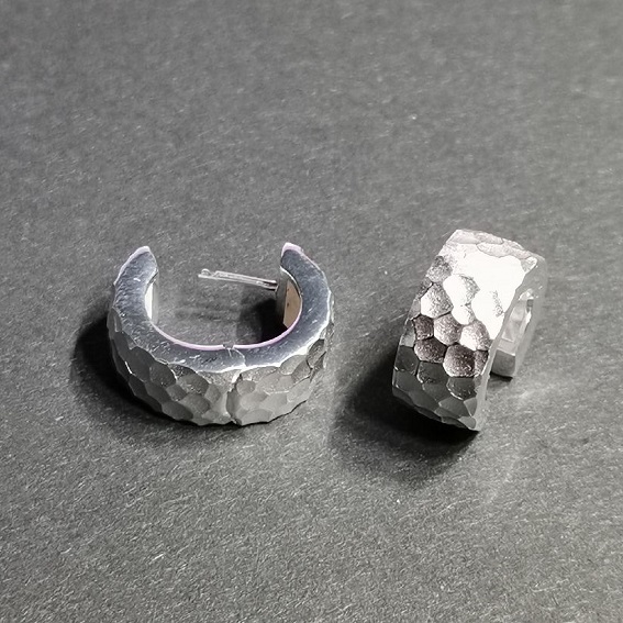Klappcreolen grobe Lavastruktur ringsum, Breite 8 mm,Durchmesser aussen 17,5 mm, innen 11,5 mm.