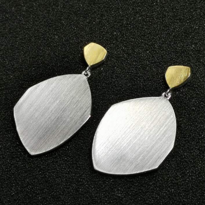 Ohrhänger großes Blatt beweglich, Oberteil mit Stecker mit 900/- GG belötet,Feinmatt, Maße Oberteil ca. 7 x 7 mm, Behang 29 x 22 mm plus ÖsenbewegungGewicht pro Stück 5,1 Gramm