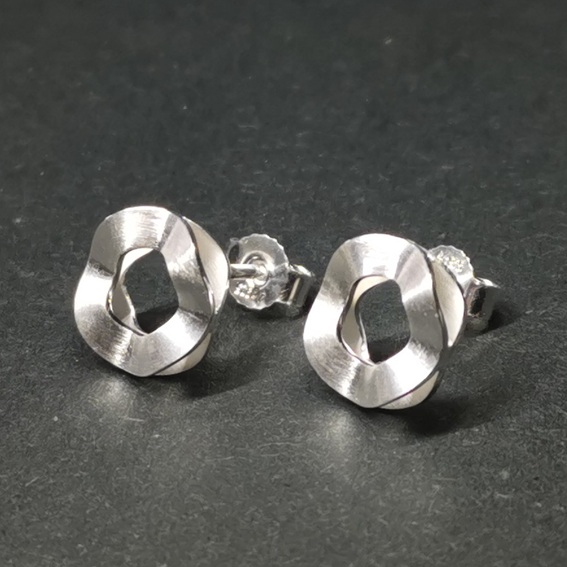 Ohrstecker kleine doppelte Welle, ganz Silber 925/-, Durchmesser 11 mm, Stärke 3,5 mm. Stifte am inneren Rand.