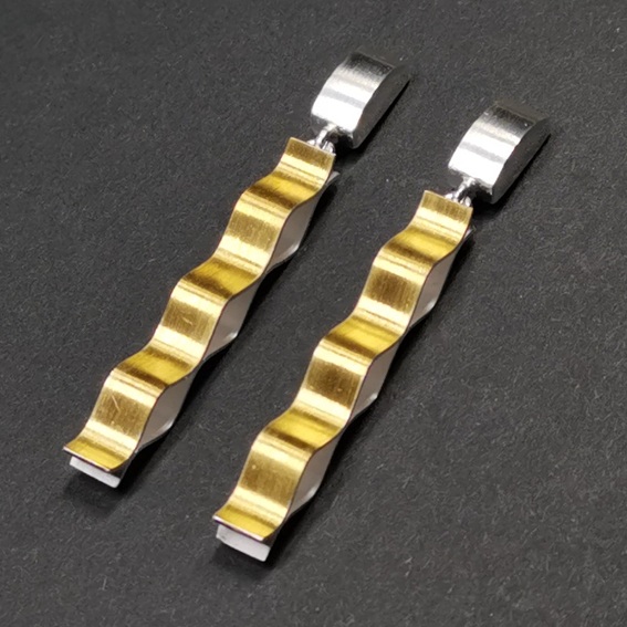 Ohrhänger Kaskade, Silber 925/- Vorderseite jew. mit 900/- GG belötet.Länge 49 mm, Breite 5 mm. Stifte mittig am Oberteil.
