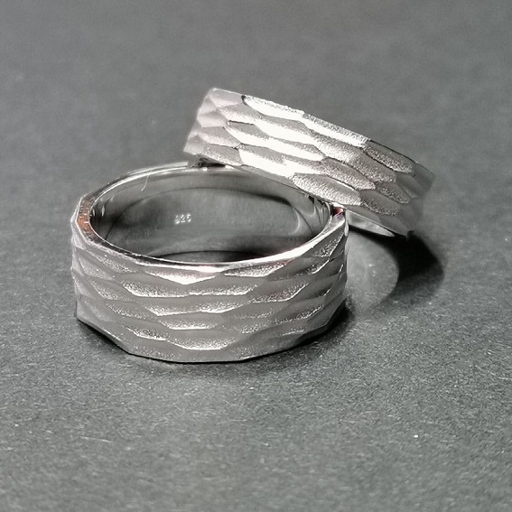 1 Paar Partnerringe - DR 5,8 mm breit, HR 8 mm breit.flaches Profil, Rillenmotiv ringsum.