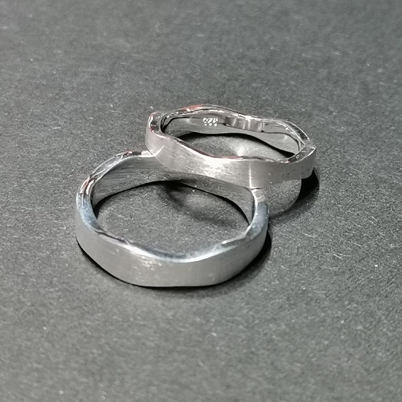 1 Paar Partnerringe: DR 2 - 3,5 mm breit, HR 3 - 5 mm breit.Wellenmotiv.