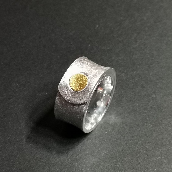 Ring konkav "Gürtel" mit Goldpunkt GG 900/-Breite ringsum 10,5 mm