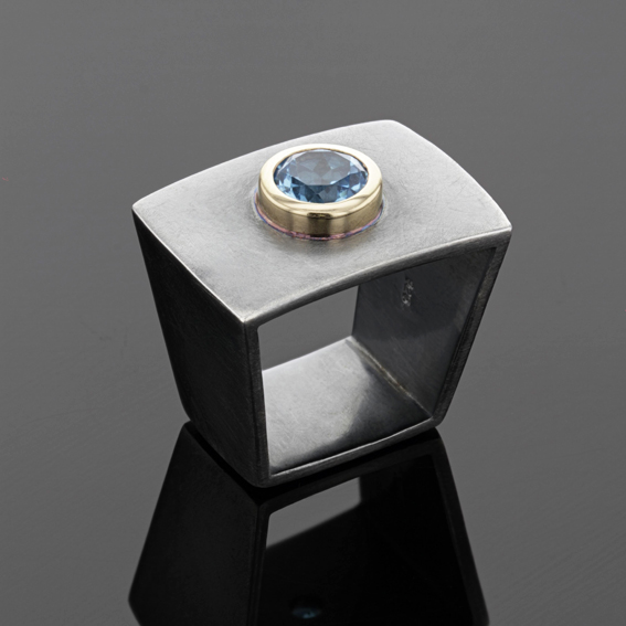 Ring breit mit eckiger Schiene, 750/-GG Fassung mit Farbstein 7 mm,Topas / Citrin / Peridot