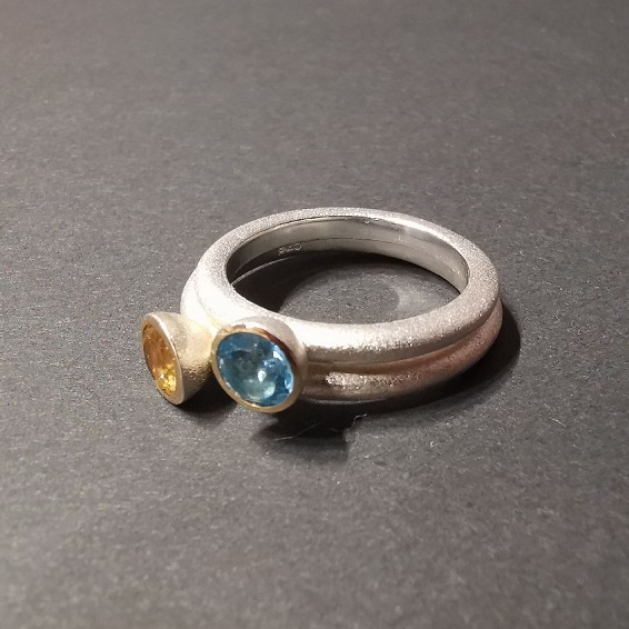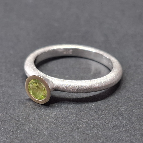 Ring stapelbar, mit Halbkugel obenauf mit 5 mm Farbstein, Fassrand 750/- GG
