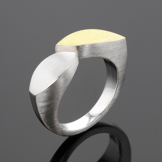 Ring 2 Navetten, die größere 16 x 6 mm ist 900/-GG belötet, die kleinere 12 x 6 mm in weiss