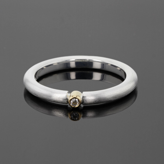 Ring Rundprofil, oben mit zwischengesetzter 750- GG Zargenfassung mit Brillant 0,03 ct W-Si