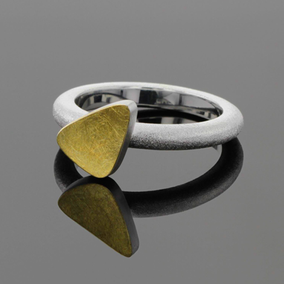Ring mit schräg aufgesetztem Dreieck 11 x 8 mm, oben 900/-GG belötet.Schiene Rundprofil 3 x 2,5 mm