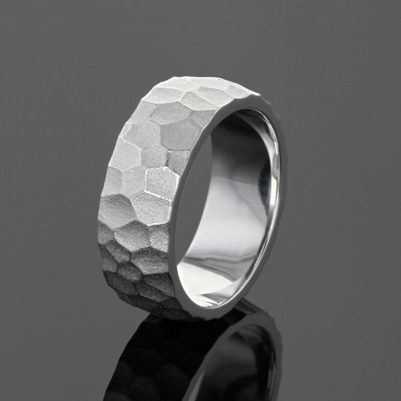 Partnerring HRBandring 7,5 mm breit, Oberfläche grobe Lavastruktur, Schiene konvex, Stärke mittig 2 mm, Aussenkante 1 mmPassend zu DR R1730