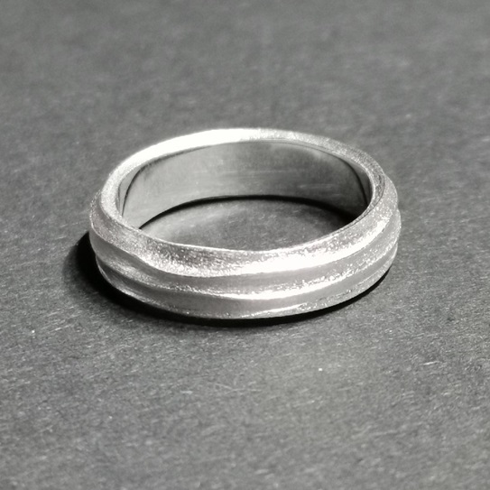 Bandring schmal Wellenmotiv, Breite 5 mm. Stärke 2 mm.Oberfläche gesandet, Wellenstreifen poliert.