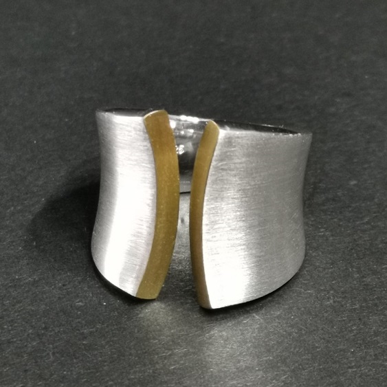 Silberring Verlauf 21 auf 9 mm, oben offen, beide offene Kanten mit 900/- GG belötet