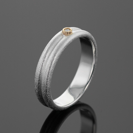 Ring Doppelschiene Silber 925/- mit Fassung 750/-GG, 1 Brillant 0,025 ct. W-Si. Breite 4,5 mm