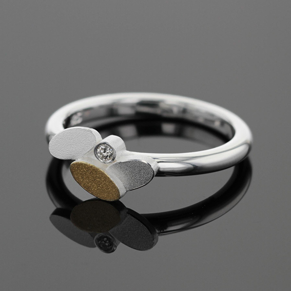 Ring 3 kl. Ovale Silber 925/- , 1 Oval mit 900/- GG belötet, 1 Brillant 0,025 ct. W-Si. Schiene Rundprofil 2,2 mm breit. Köpfchen 12 x 5,5 mm.