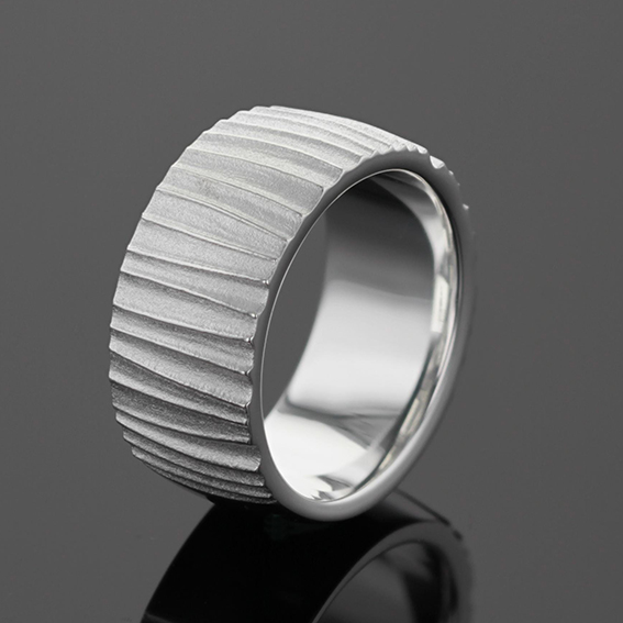 Bandring Silber 925/- mit unregelmäßigen Linien, Breite 9,5 mm. Unten ein glatter Bereich für RW-Änderungen.