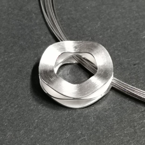 Anhänger Welle dreifach groß, Aussendurchmesser 19,5 mm, Höhe 6 mm, Mittelloch 11 mm. Feinmatt, Ränder poliert.