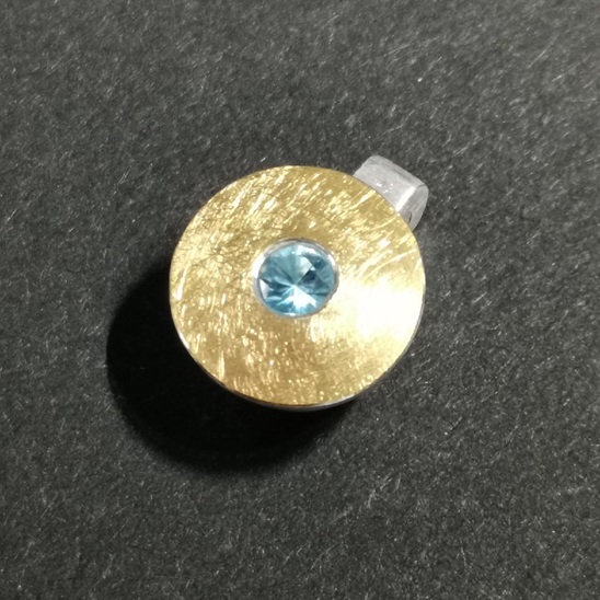 Anhänger Halbkugel groß, Durchmesser 12 mm, obenauf mit 900/- GG belötet,Farbstein 3,5 mm fac. mittig im GoldEismatt. Körper 7 mm stark, 1 Öse innen bis 4,7 x 3,1 mm durchgängig