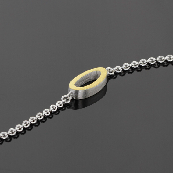Armband Oval 14 x 7 mm, Stärke 3 mm. Öffnung 10 x 4 mm.Vorderseite 900/-GG belötet feinmatt, Rest poliert.Länge 17,5 cm, Zwischenöse bei 15,5 - 16 cm