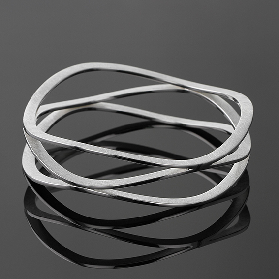 Armreif Welle dreifach, Aussendurchmesser ca. 69 mm, innen 61 - 62 mm.Breite der Wellen von knapp 11 bis 16 mm, Oberflächen Eismatt, Ränder poliert. Nur in dieser Größe lieferbar.